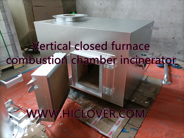 Vertical closed furnace combustion chamber incinerator